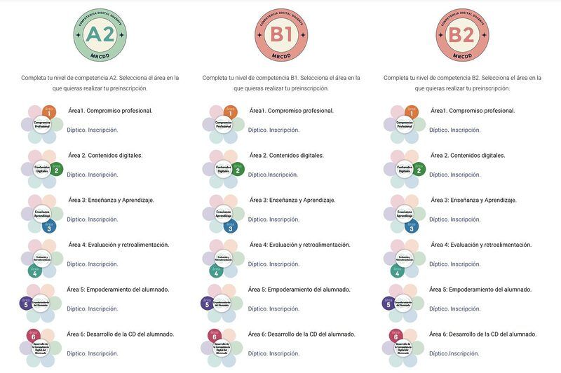 Durante el primer trimestre del curso escolar 25-26, se ofertarán formaciones específicas en Competencia Digital Docente (CDD), en  la modalidad tutorizada en red, dirigidas a la adquisición de los niveles A2, B1 y B2. Se desarrollarán en dos convocatorias, organizadas por áreas competenciales y se permitirá realizar hasta tres áreas por convocatoria.